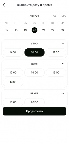 Этапы бронирования на примере мобильного устройства
